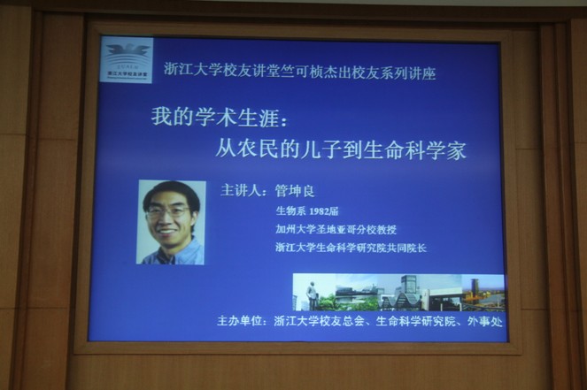 11月23日下午管教授在蒙民伟楼139报告厅作了题为“我的学术生涯:从农民的儿子到生命科学家”的第二场报告。讲座中管坤良教授与广大师生分享了他的成长历程,从农村孩子考入浙江大学(原杭州大学),并于1983年通过第二届CUSBEA考试赴美留学,通过自身不懈努力,成为PI并组建自己独立实验室。最后管教授介绍了在促进国内生命科学发展中所做的杰出工作。管教授诙谐幽默的讲演引起在座师生们的阵阵笑语,掌声不断。