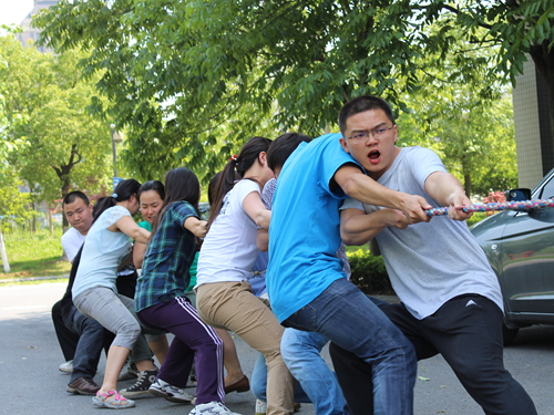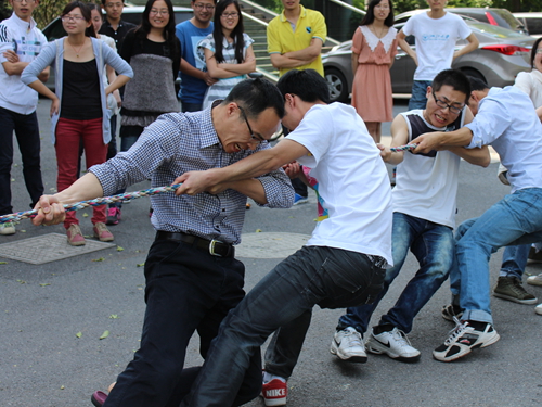 最为刺激又最有趣的的当属拔河比赛。一声令下,实验室间开始了激烈的对决。有些实验室缺少重量级的人物,势单力薄,在预赛中就被淘汰出局。很有意思的是,在第一轮的比赛中,其他实验室都见识到了冯新华老师实验室学生的神力,在决赛时,为了给自己的实验室增加取胜的砝码,很多实验室搬来了重量级的外援,这些外援的加入瞬间就使局势得到了逆转。但遗憾的是,这些外援最终还是没能与冯老师实验室的重量级人物抗衡,冠军的奖杯被冯老师实验室收入囊中,宋海卫老师实验室以微薄的弱势获得了亚军,第三名被黄俊老师实验室摘得。