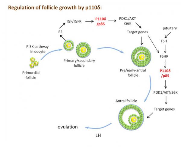 卵巢低反应是人类辅助生殖临床治疗中遇到的一种疑难病例,但是分子机制一直不清楚。在本文章中,范衡宇课题组首次用基因敲除小鼠模型,证明了PI3K信号通路的关键基因Pik3cd在哺乳动物卵泡生长过程中的作用,阐明卵泡颗粒细胞中的PI3K信号通路在卵泡发育的多个阶段,都对雌激素和促性腺激素诱导的卵泡生长过程和内分泌事件具有重要调节功能,是雌性生殖细胞成熟所必需的。