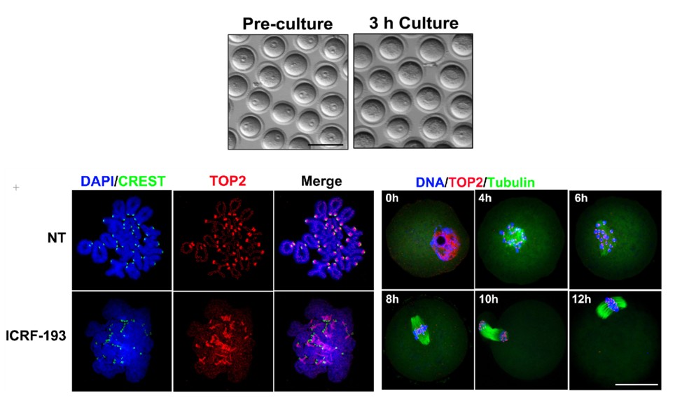 在本研究中,范衡宇课题组发现,在卵母细胞减数分裂过程中,并不存在与有丝分裂相对应的DNA凝集检验点。但是,TOP2的活性对于卵母细胞的染色体凝集、染色体分离、极体排放和受精,都具有重要的调节作用。