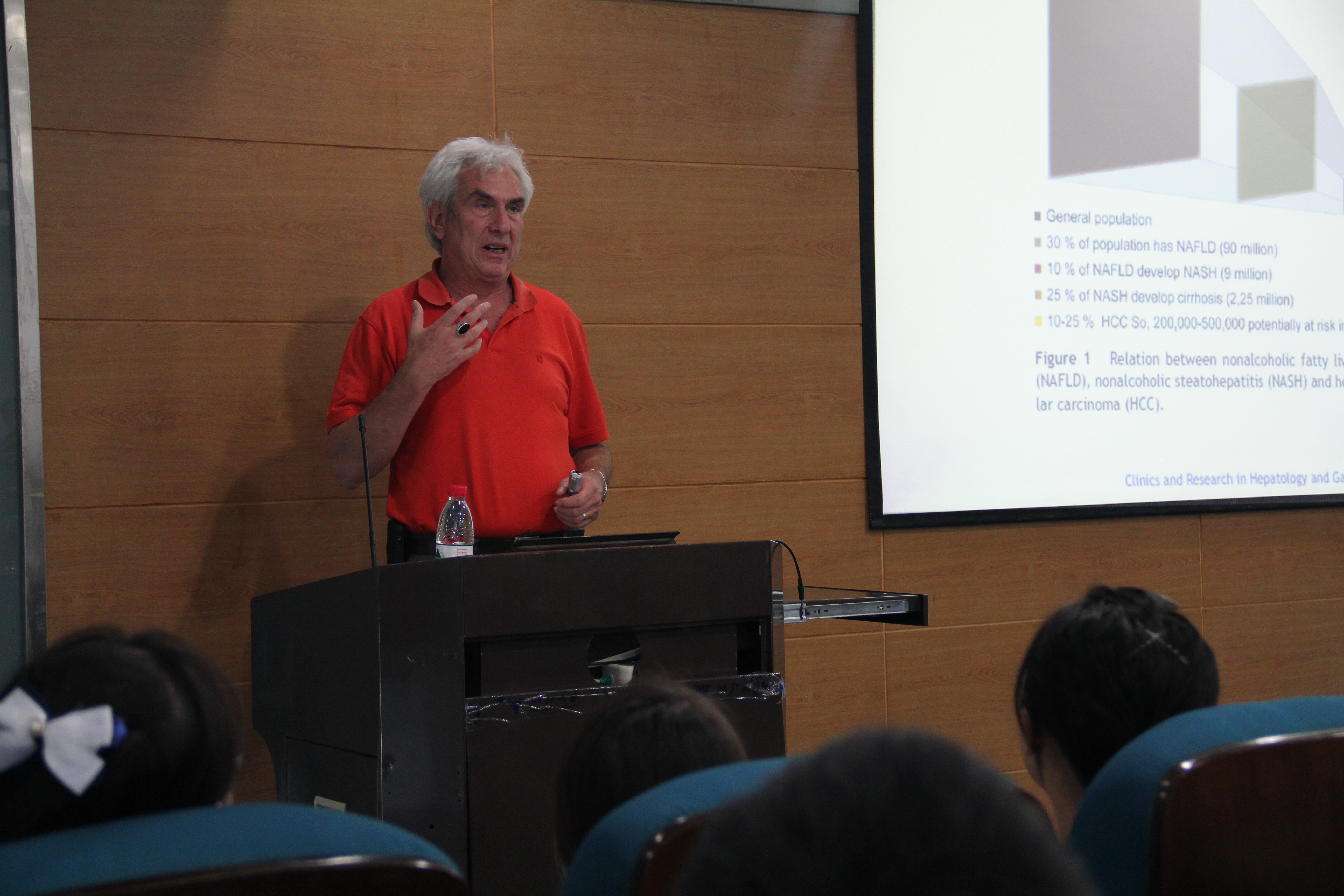 下午的讲座会场座无虚席,师生积极踊跃。Karin教授做了题为“New Insights to the Pathogenesis of NASH and Obesity Linked HCC”的学术报告,主要介绍了肥胖与肝癌的发生的关系和内质网与肿瘤发生。通过老鼠模型去研究它们之间的具体生物学发生的分子机制,并介绍了相关领域的重大科学问题和最新进展。提问环节,师生与Karin教授进行了热烈讨论和深入交流。
