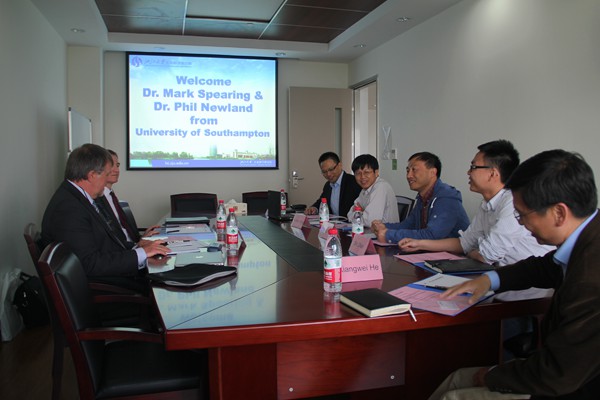 冯新华院长对Mark Spearing副校长及自然与环境学院副院长Phil Newland教授的到来表示热烈欢迎。院长助理仓勇教授向来宾介绍了生研院发展整体情况并重点介绍了研究院在合作交流及研究生教育方面所取得的成绩。自然与环境学院副院长Phil Newland教授也简要介绍了英国南安普顿大学生物研究情况。随后,双方就科研合作与研究生交换等议题展开深入沟通和探讨,Mark Spearing副校长高度评价了生研院自建立以来取得的突出成就,表示愿意与我院开展互利有效的学术合作与学生交流。