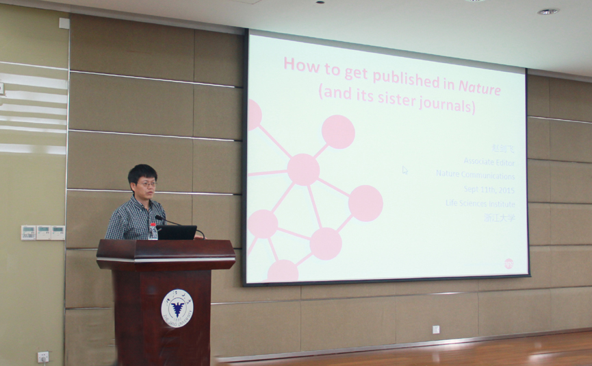 2015年9月11日国际知名学术期刊Nature Communications编辑赵剑飞博士应邀来访我院并进行学术交流。