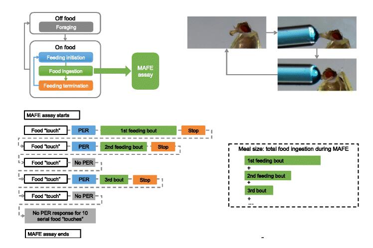 果蝇的进食行为可以分为几个行为学要素,包括觅食,进食的开始和结束,以及食物的摄取。尽管研究人员已经开发出了很多研究果蝇进食行为的方法,但是进食行为中的每个要素,特别是食物摄取是怎样调控的还不清楚。本项研究中,王立铭课题组开发了一个新的试验方法(MAFE, manualfeeding),可以特异的测量果蝇的食物摄取而不受其他行为干扰。通过这种方法,发现了果蝇能够在20-30s的时间内辨别出食物是否具有营养,并且发现SLC5A11和Gr43a分别在对D-葡萄糖、D-果糖和它们无营养的对映体的辨别中起关键作用。这一方法为研究果蝇的进食行为提供了新的手段和思路。