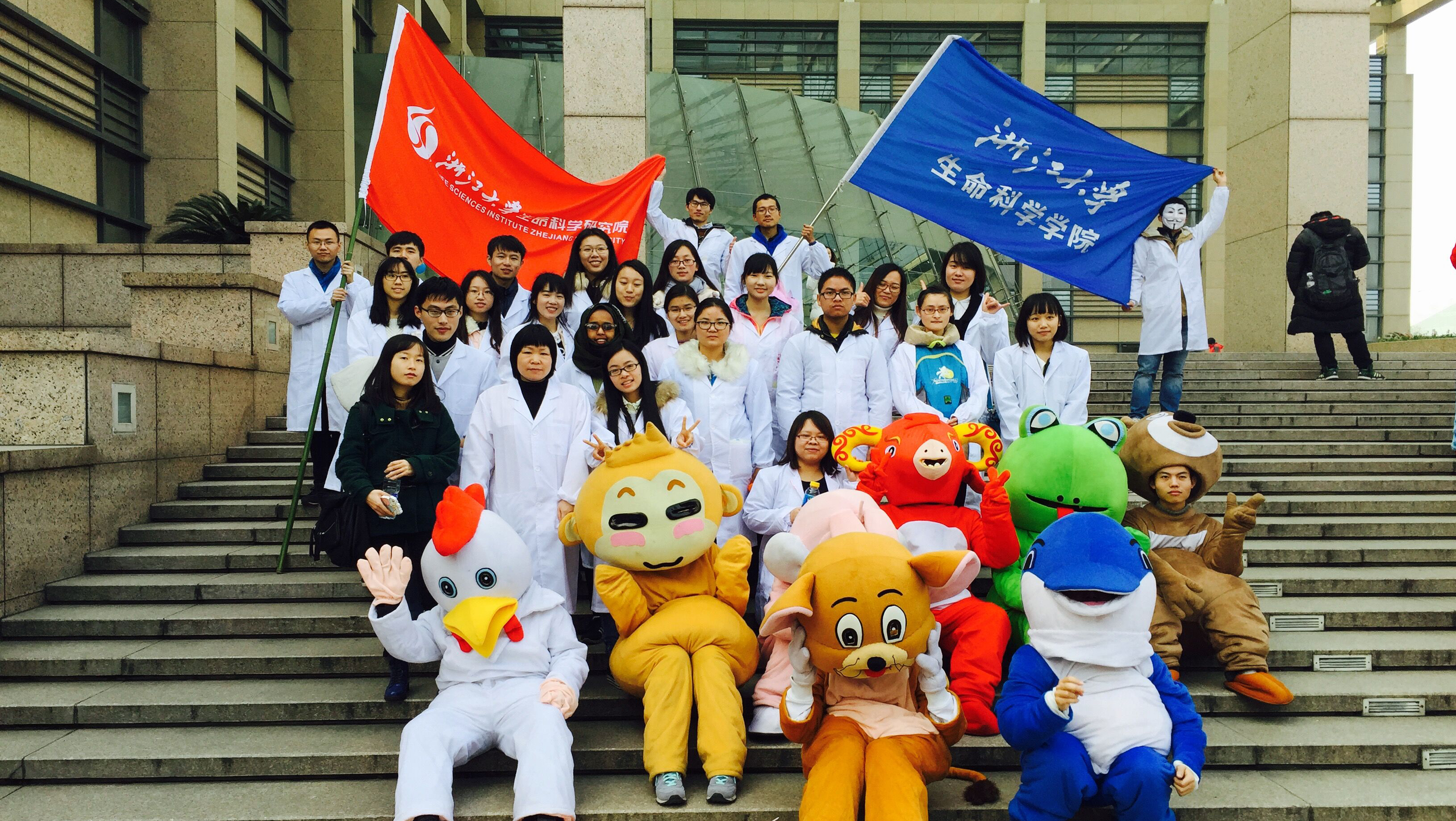 2015年12月31日上午,浙江大学学生节“花漾紫金”欢乐大巡游活动在紫金港校区圆满举行。生命科学研究院联合生命科学学院组成“模式生物总动员”方阵,充分展示了生命科学领域的学科特色,彰显了青春洋溢的学子风采。