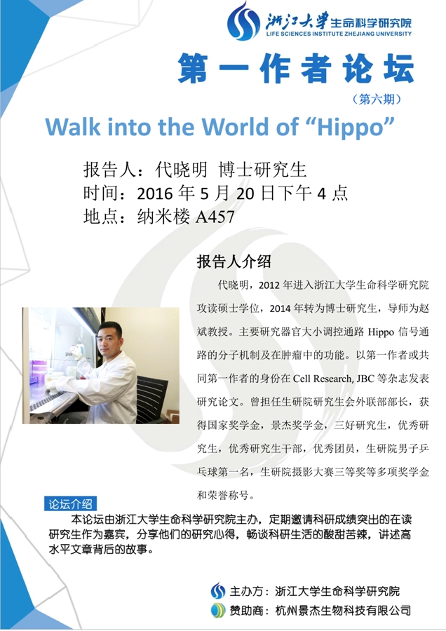 生命科学研究院第一作者论坛第六期通知