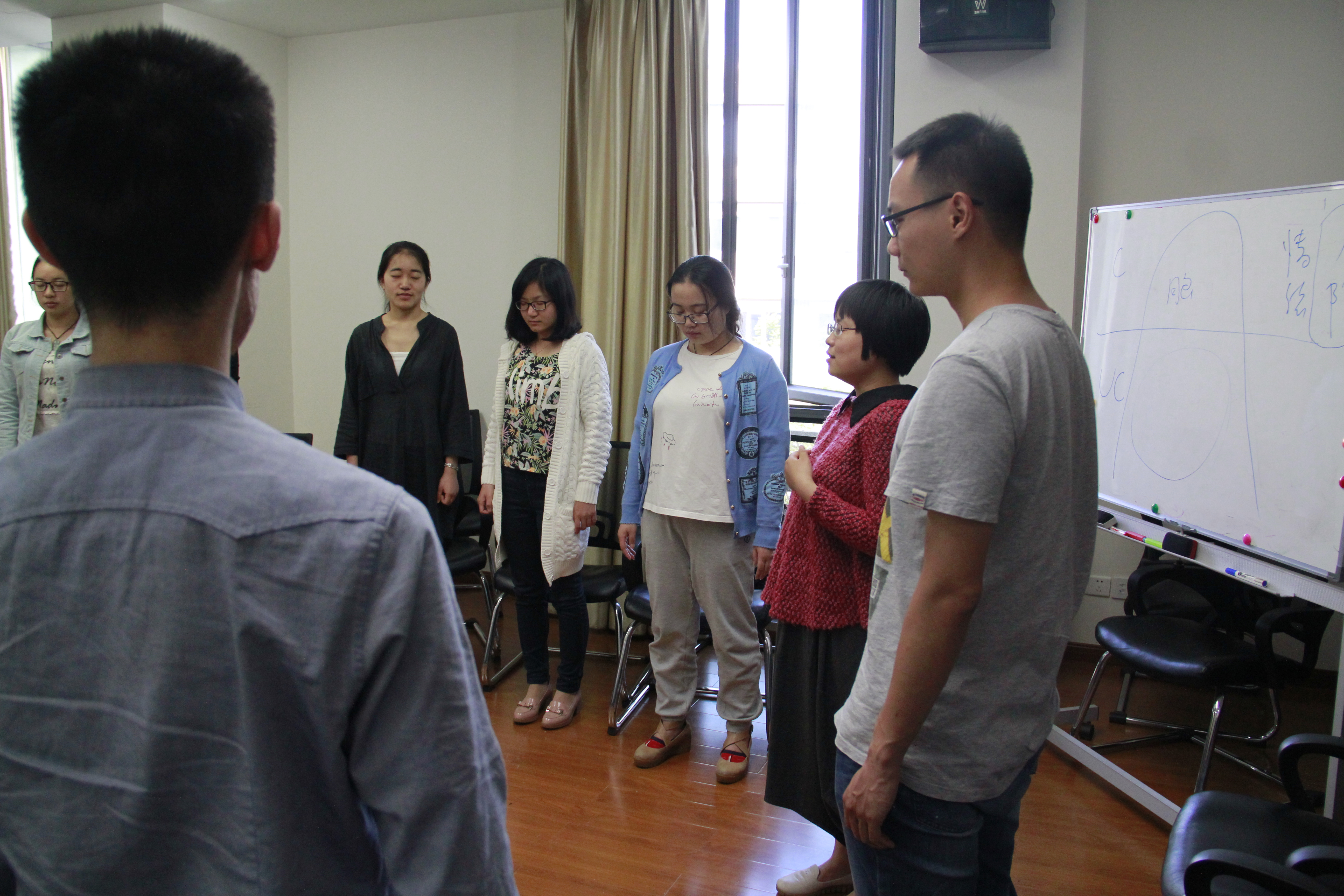 随后,刘艳老师将大家随机两两组合,通过“走向对方”、“一人一手控笔”、“为对方按摩”等两人互动游戏,让大家亲自体验人际交往中的微妙。游戏中,大家积极表达自己内心的情感变化,刘老师适时对大家的反馈做了相应的解释。通过游戏,大家学习到很多,比如,可以通过肢体语言来感知自己和别人的情绪变化;即使是亲密关系中的两个人,也需要通过细节来感知对方从而给对方提供合适的的个人空间;人与人相处是需要不断感知,不断调整,不断适应和磨合的等等。