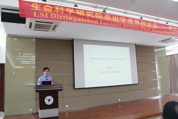访问当日,舒红兵院士在冯新华院长的陪同下参观了生研院,高度评价了研究院建院六年来所取得的突出成绩。随后,作为“生命科学研究院杰出学者系列讲座 (Life Sciences Institute Distinguished Lecture Series )”2016年第2场(总第17讲)讲座嘉宾,舒红兵院士为全校师生作了题为“抗病毒天然免疫机制”的精彩学术报告。