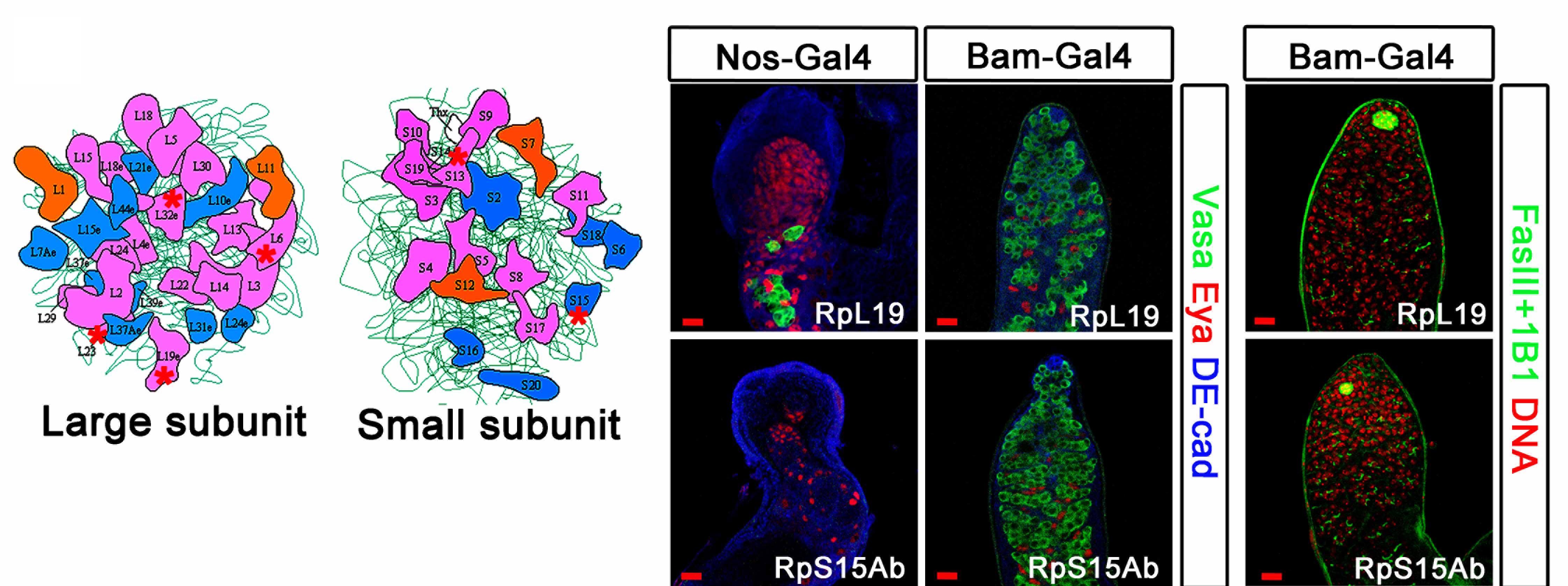 九个编码核糖体蛋白的基因既参与生殖干细胞的我更新又参与早期生殖细胞的分化