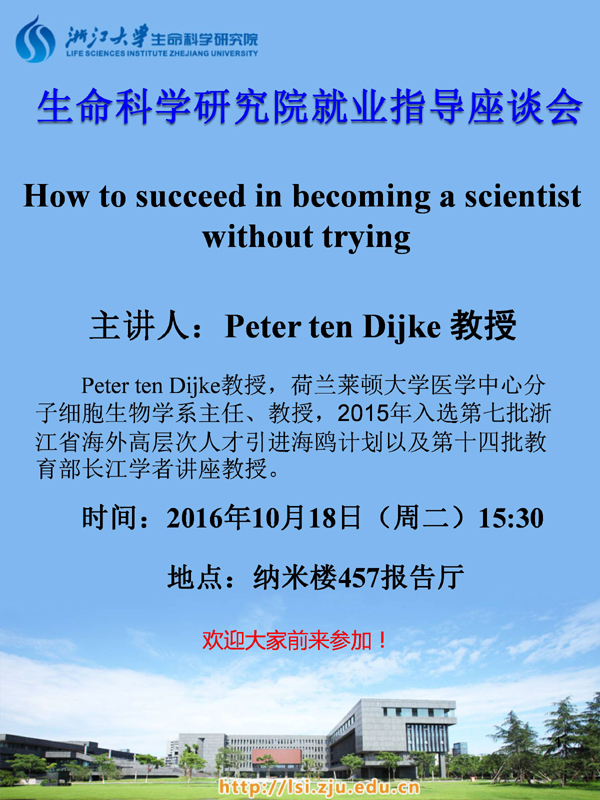 生命科学研究院关于开展Peter ten Dijke教授就业指导座谈会的通知