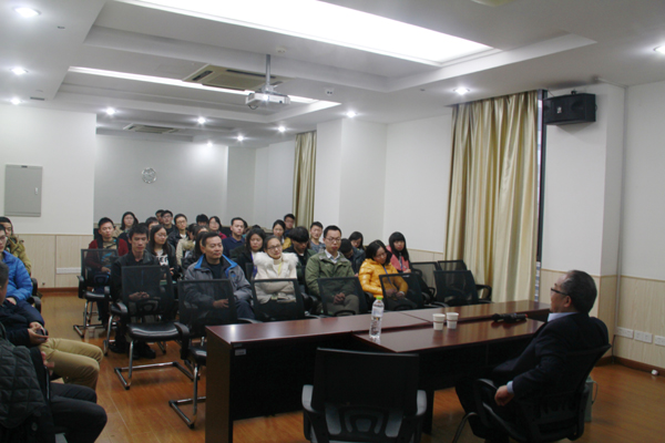 座谈会开始,王教授用谦逊低调的自我评价:“我什么都不是,我只是帮助中国的大学反映问题”作为开场白。座谈会采用自由的提问方式,在场同学就自己感兴趣的不同问题向王教授提问。首先代晓明同学就目前国内生物学前景不如美国发达,许多博士在毕业后选择去美国作博士后的现象,提出了生物领域的科研工作者该如何就业的问题。王教授认为在就业选择上,每个人应该认识自己,如果觉得自己对科研有热情,那么就坚定地走下去,不要太在乎别人的看法;但如果觉得科研不适合自己,那么不如先好好完成手头的工作,再找机会另觅他路。此外,王教授用自己年少时在工厂里工作,后来自学了数学和英语,才在高考时考上武汉大学的例子来告诉大家,不管从事什么样的工作,都不能忘记提高自己,否则就算机会出现了,也只是白白溜走了。