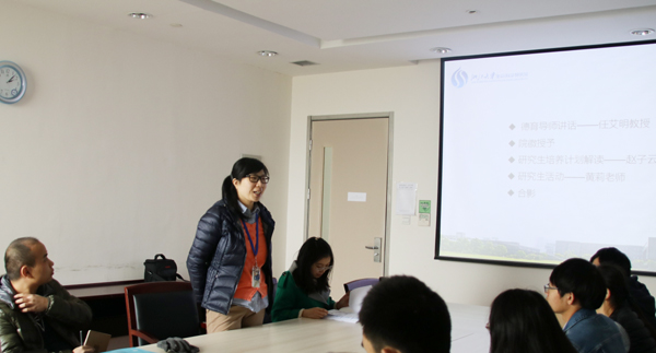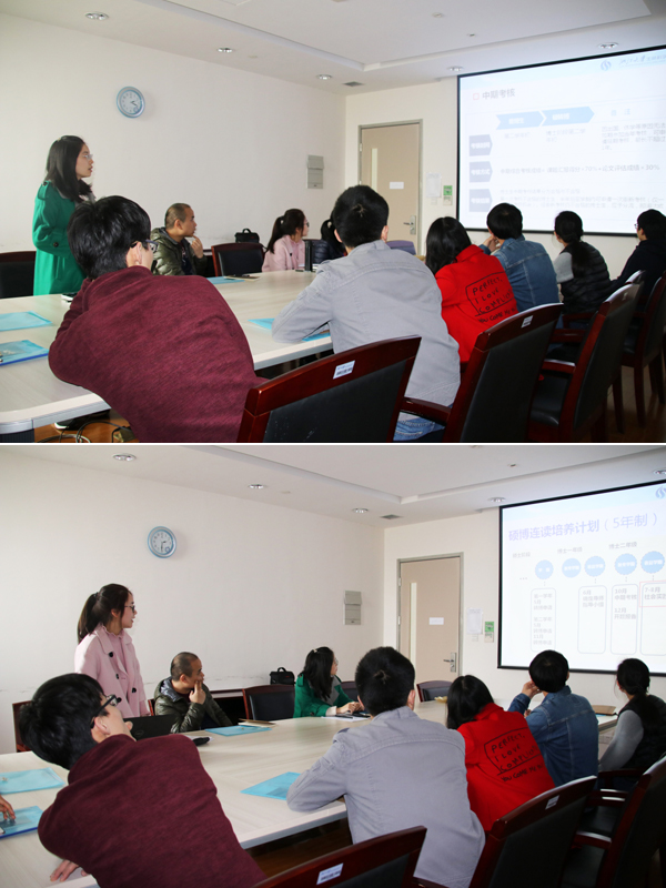 随后,研究生办公室赵子云老师从课程学习、中期考核、资助评选、毕业要求等方面为同学们详细解读了博士研究生培养计划;黄莉老师则为大家仔细介绍了生研院的思政工作,鼓励同学们多参加各类研究生活动,并祝福大家取得优异的科研成绩。