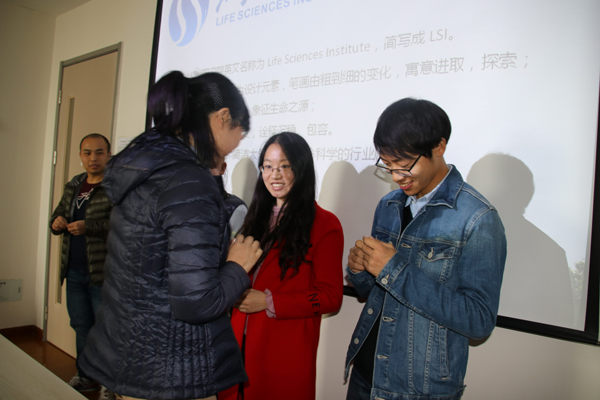 典礼伊始,任老师对17级春季博士研究生们表达了期望并送出了寄语。任老师指出,作为硕转博或普博生,大家都已经经过了2年以上的系统实验技能训练,与直博生相比拥有更多的科研经历。因此,继续选择读博是认真思考后的决定,相信大家已经对今后的学习与科研都有所规划。同时,任老师勉励各位新生,硕士与博士间的差异主要表现在从科研基本训练到独立科研能力的培养,所以在今后的科研学习中,同学们要习惯独立思考,培养自己解决问题的能力。之后,任艾明老师为全体新生佩戴院徽。