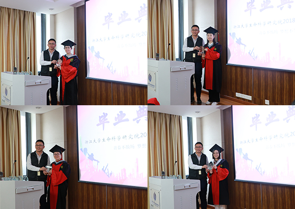 典礼伊始,院长助理赵斌老师首先向毕业生表达了最诚挚的祝福,同时对即将走向社会的同学们提出三点希望:第一希望大家保持终身学习的习惯与能力,做到与时俱进。第二保持一颗感恩之心,做一个善良的人,学会更好的与人合作和沟通。第三不忘家国,不忘母校,不忘父母,给父母多一些陪伴。最后赵老师祝愿大家以生研院作为起飞的平台,在迎来的新世界里大展宏图,实现人生价值,拥有一个更加美好的未来。随后,赵老师为毕业生颁发纪念品并合影。