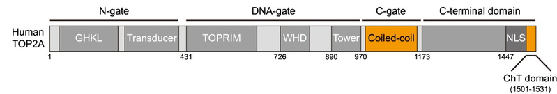 图3:人源TOP2A蛋白的结构域示意图。