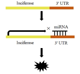 (一)验证microRNA同某基因mRNA靶向互作。将待测mRNA的3’UTR序列插入报告基因载体,再共转入该microRNA,如果萤光素酶活性下降,则提示为其靶序列。