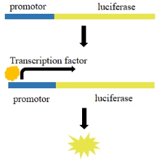 利用荧光素酶与底物结合发生化学发光反应的特性,把感兴趣的基因转录的调控元件克隆在萤火虫荧光素酶基因的上/下游,构建成荧光素酶报告质粒。然后转染细胞,适当刺激或处理后裂解细胞,测定荧光素酶活性。通过荧光素酶活性的高低判断刺激前后或不同刺激对感兴趣的调控元件的影响。