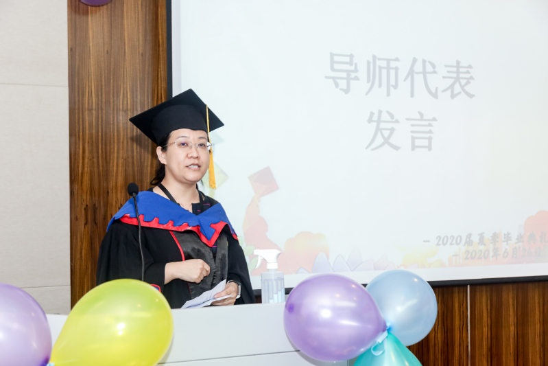 导师代表姬峻芳教授高度肯定毕业生的优秀才能,希望学会爱和付出,在将来的岗位上继续保持勤奋进取的态度,不断前行。