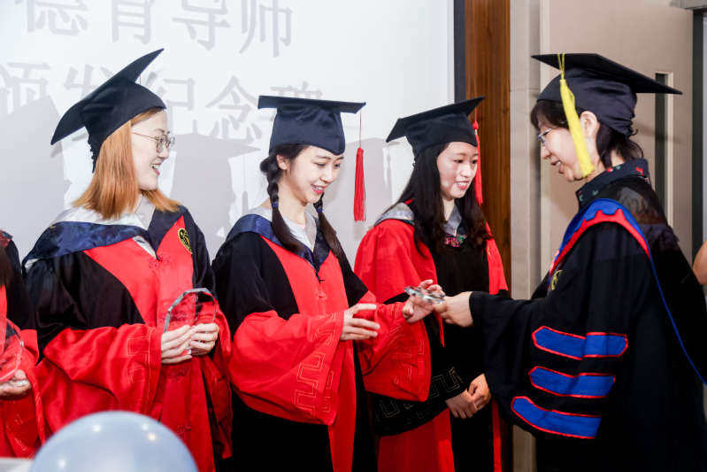 德育导师任艾明教授和沈立教授分别向毕业生表达了美好的祝愿,为每一位毕业生颁发纪念碑,希望大家在今后的生活中努力追寻有意义的生活,成就有价值的人生,终生学习,在培养思辨思维的同时,要从对自我的深入了解中出发,忠于内心,做想做的事情。