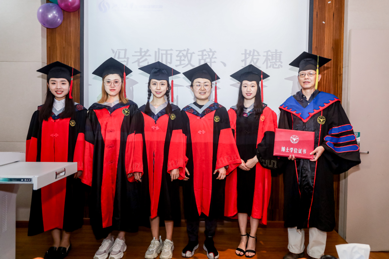 典礼期间,冯院长为毕业生拨穗、颁发证书,德育导师颁发纪念碑。