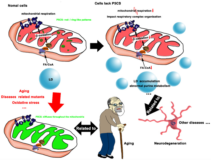 本研究揭示了P5CS可以作为一个外界刺激的感受器调控整合多种线粒体代谢途径,为研究线粒体调控神经系统稳态维持和衰老提供了新的思路。也从一个新的角度揭示了ALDH18A1突变的致病机制。