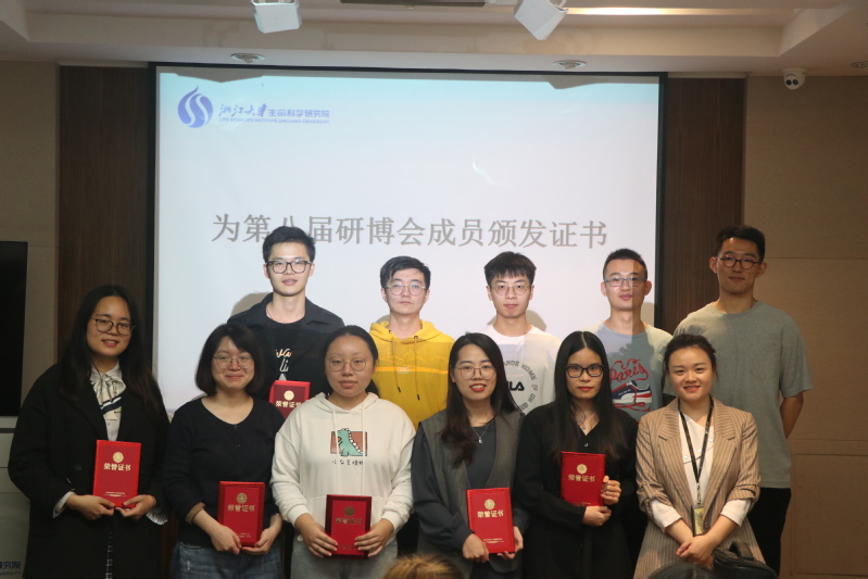 讲话结束后,由研究生办公室刘婷老师为第八届研博会成员颁发荣誉证书。