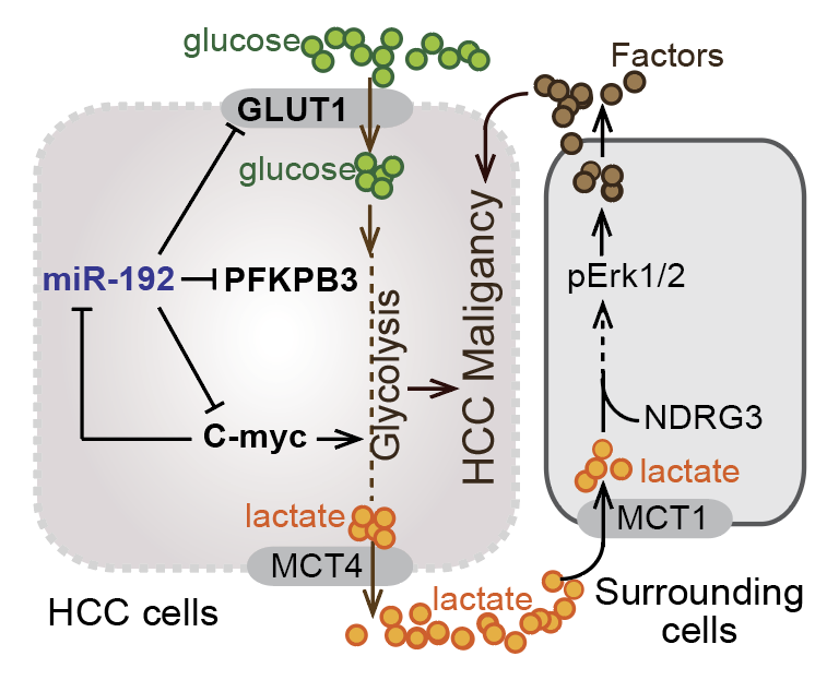 2020年11月30日,我院姬峻芳教授实验室在Journal of Experimental & Clinical Cancer Research杂志在线发表题为“Loss of miR-192-5p initiates a hyperglycolysis and stemness positive feedback in hepatocellular carcinoma”的研究文章。该文章讲述肝脏特异性miR-192-5p调控肝细胞癌肿瘤细胞自身代谢、且进而影响周围非肿瘤细胞信号转导通路,协同抑制肝细胞癌的肿瘤干性特征。该研究是对2018年姬峻芳实验室在Cancer Research杂志在线发表题为“miR-192-5p silencing by genetic aberrations is a key event in hepatocellular carcinomas with cancer stem cell features”课题的延续工作。