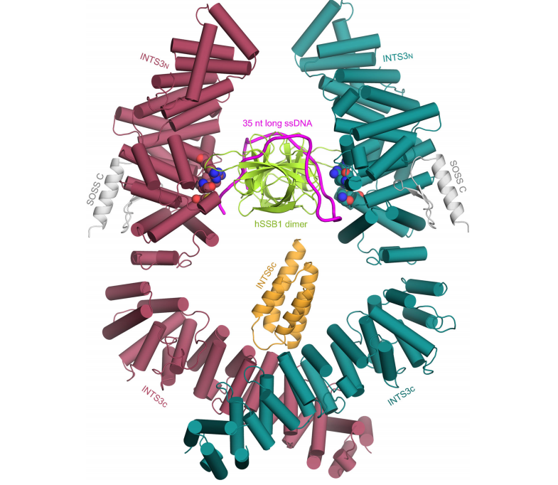 INTS3c/INTS6c结构以及其促进SOSS1复合物结合长单链DNA的模式图