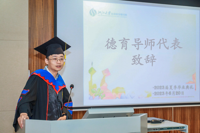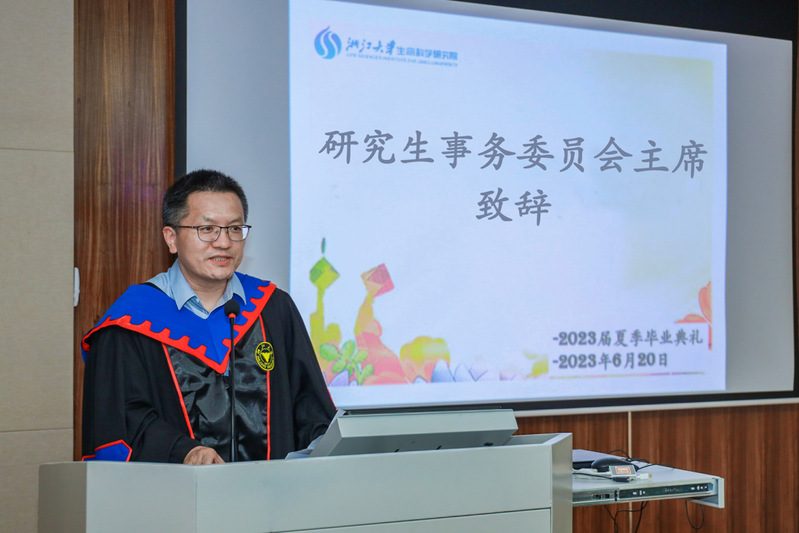 6月20日,生命科学研究院2023届夏季研究生毕业典礼在紫金港校区纳米楼举行。副院长李磊、赵斌,研究生事务委员会主席汪方炜和德育导师代表方东出席典礼,共同见证我院25名硕博研究生毕业的重要时刻。