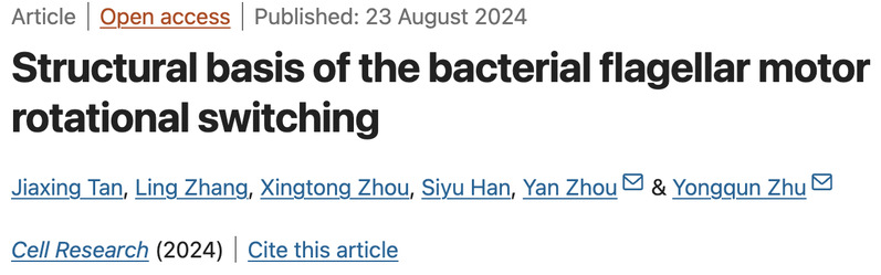 2024年8月23日朱永群实验室在Cell Research上发文揭示病原菌鞭毛马达旋转方向转换的分子机制