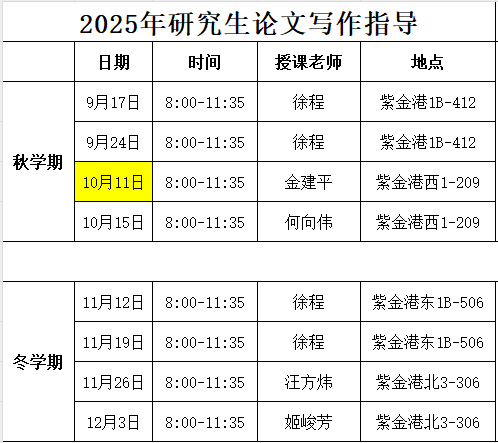 2025秋冬学期研究生论文写作指导课表