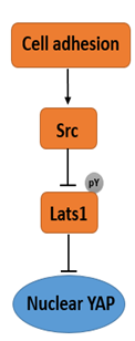 In this study, Dr. Bin Zhao’s group reported tyrosine phosphorylation of the Hippo pathway tumor suppressor LATS1 as a mechanism underlying its regulation by cell adhesion. A tyrosine kinase library screen identified Src as the kinase to directly phosphorylate LATS1 on multiple residues. Cell matrix adhesion activated the Hippo pathway effector transcription co-activator YAP partially through Src-mediated phosphorylation and inhibition of LATS1. Aberrant Src activation abolished the tumor suppressor activity of LATS1 and induced tumorigenesis in a YAP-dependent manner. Protein levels of Src in human breast cancer tissues correlated with accumulation of active YAP dephosphorylated on the LATS1 target site.