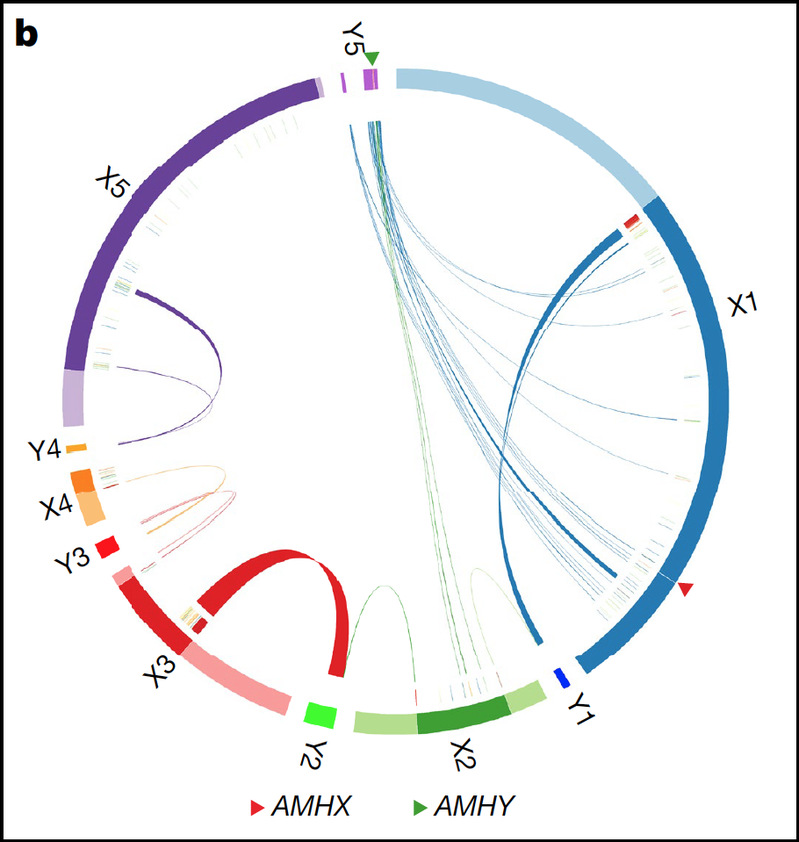 These three studies sysmtematically delineate the dazzling diversity of animal sex chromosomes and provide new insights into the origin and evolution of sex chromosomes at three-dimensional genomic levels using Hi-C technology. In general, animals and plants only have one pair of chromosomes. However, the platypus, exclusively indigenous to Australia, not only has a unique appearance which combines the features of birds, mammals and reptiles, but also has five pairs of sex chromosomes which form a chain structure during meiosis. The genomic architecture and origin of this idiosyncratic sex chromosome system has been obscure. Research teams led by ZHANG Guojie from the University of Copenhagen, Frank Grutzner from the University of Adelaide, and ZHOU Qi worked cooperatively to combine PacBio long-read, 10× linked-read, chromatin conformation (Hi-C) and physical map data so as to produce a highly accurate chromosome-scale assembly of the platypus genome. Their research provided evidence that the monotreme sex chromosome complex originated from an ancestral chromosome ring. The formation of such a unique chromosome complex may have been facilitated by the unusually extensive interactions between the multi-X and multi-Y chromosomes that are shared by the autosomal homologues in humans. Comparative genomic analyses unraveled marked differences between monotremes and therians in haptoglobin genes, lactation genes and chemosensory receptor genes for smell and taste that underlie the ecological adaptation of monotremes.